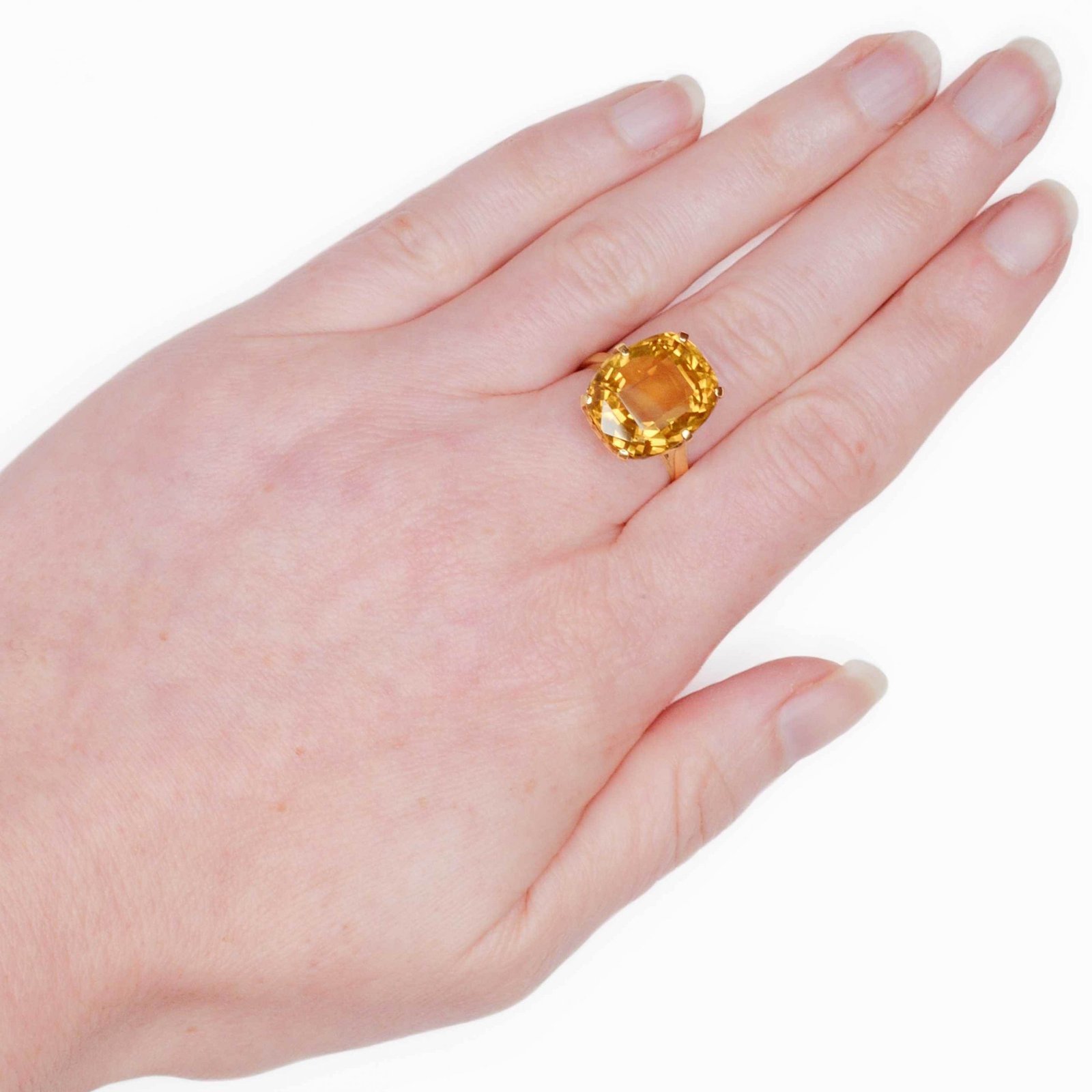 The fancy-cut citrine measures 15mm x 13mm and is a rich honey yellow colour, verging on amber. It glitters wonderfully as it catches the light – quite the sparkler, this one!