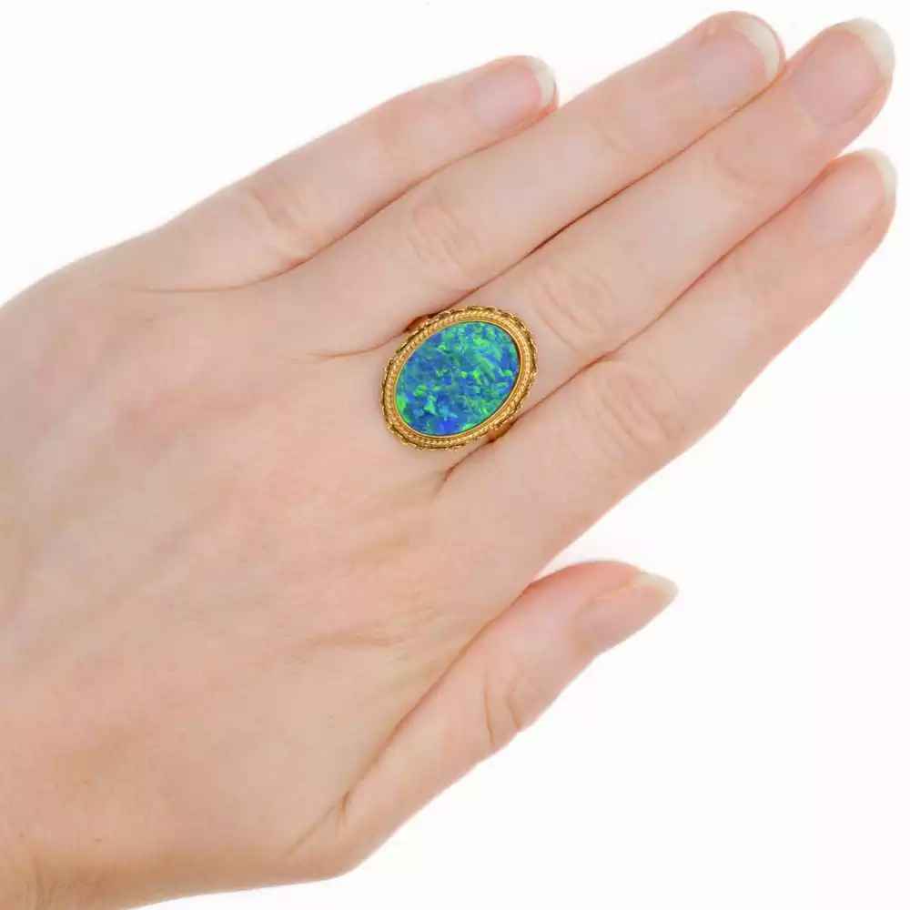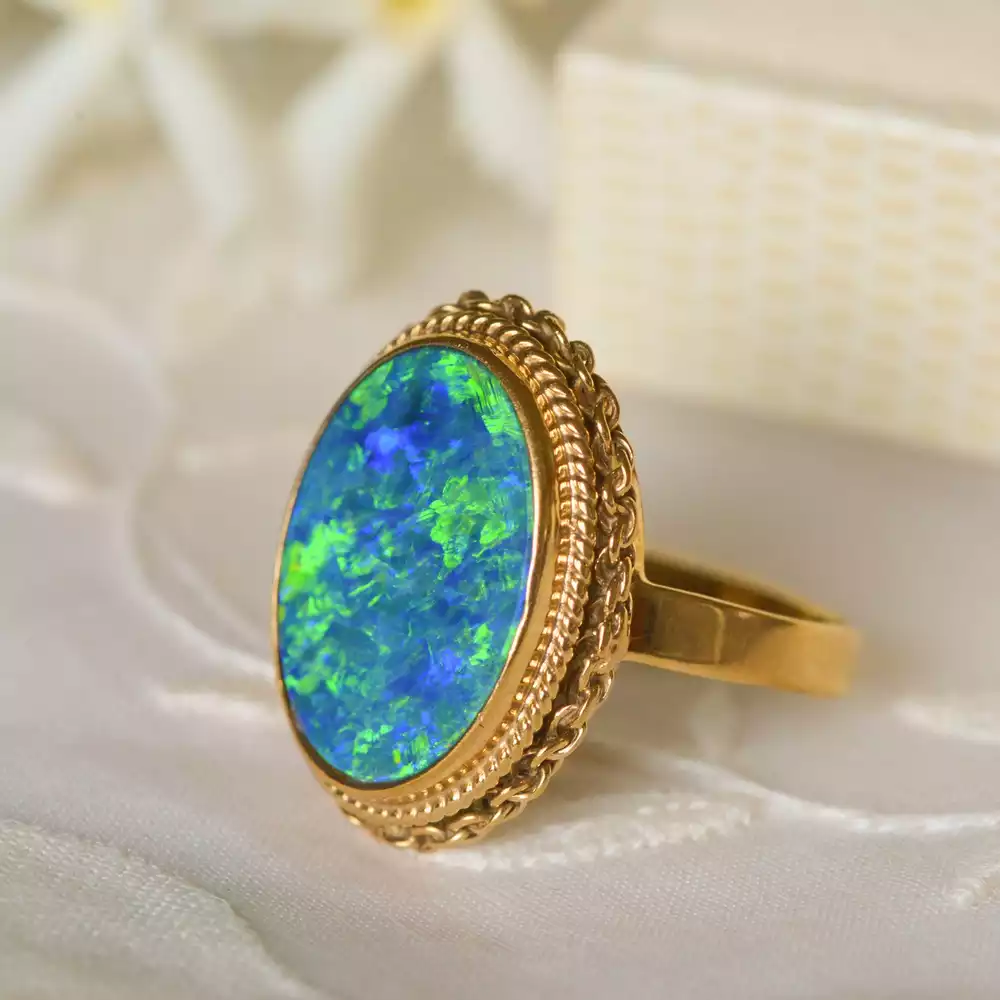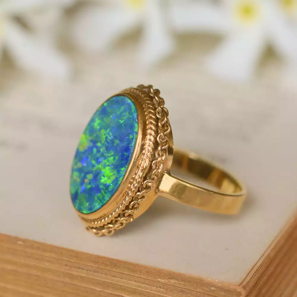 Vintage Opal Doublet Statement Ring in 9ct Gold